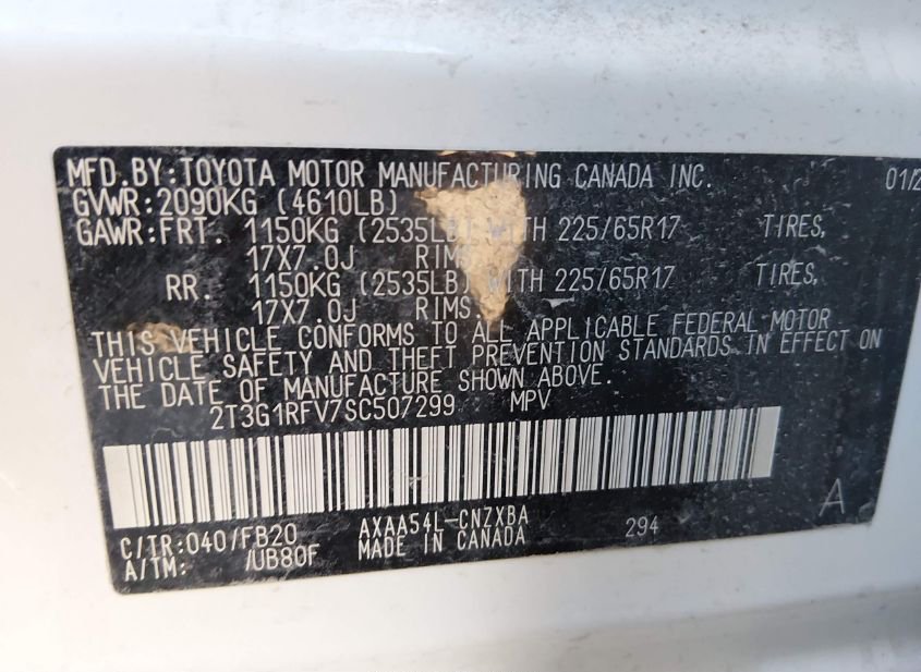 - VIN: 2T3G1RFV7SC507299