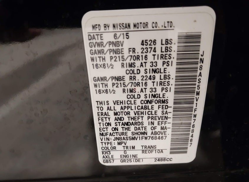 - VIN: JN8AS5MV1FW768467