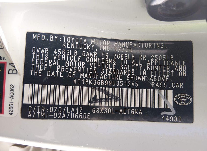 - VIN: 4T1BK36B99U351245