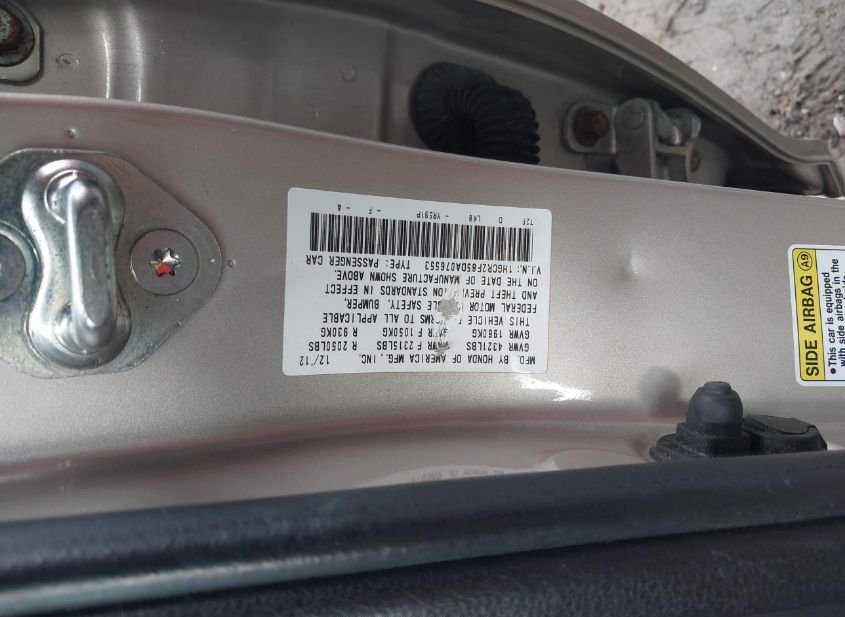 - VIN: 1HGCR2F85DA076553