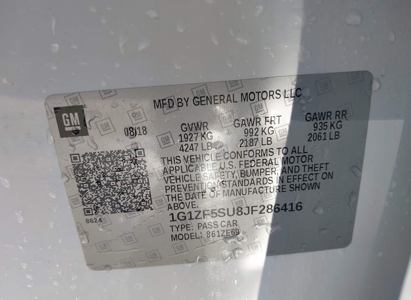- VIN: 1G1ZF5SU8JF286416