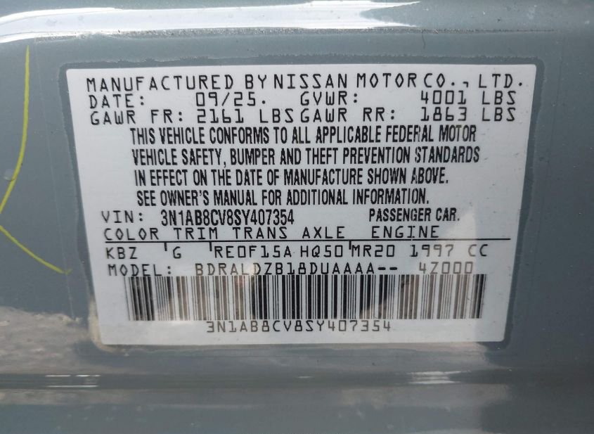 - VIN: 3N1AB8CV8SY407354