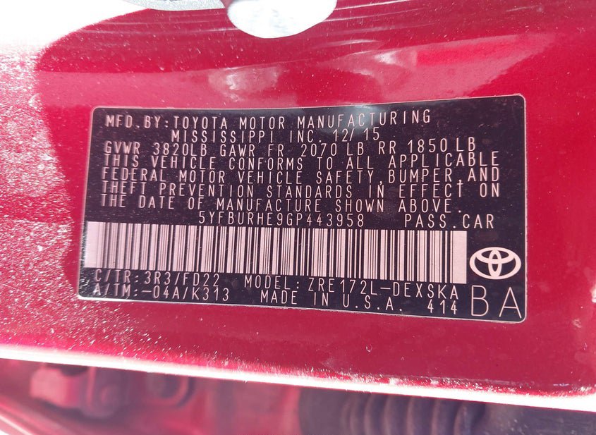 - VIN: 5YFBURHE9GP443958
