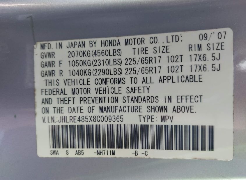- VIN: JHLRE485X8C009365