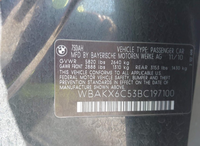 - VIN: WBAKX6C53BC197100