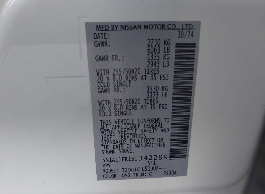 - VIN: 5N1AL1FR1SC342299