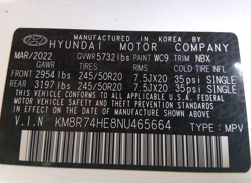 - VIN: KM8R74HE8NU465664