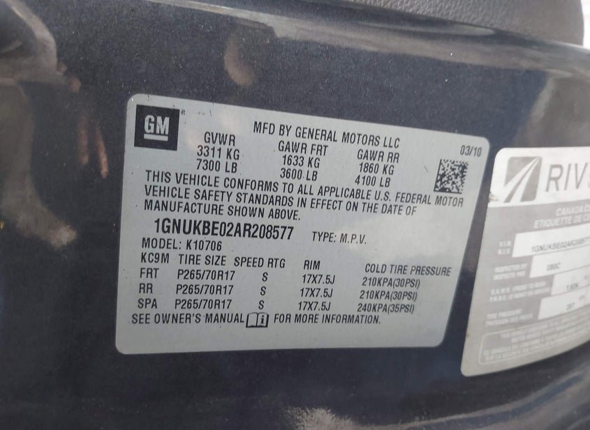 - VIN: 1GNUKBE02AR208577