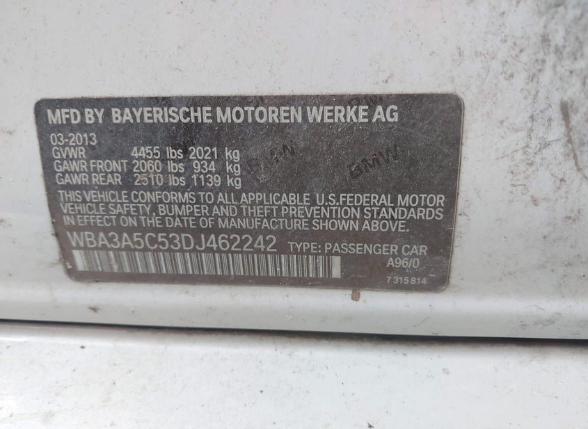 - VIN: WBA3A5C53DJ462242