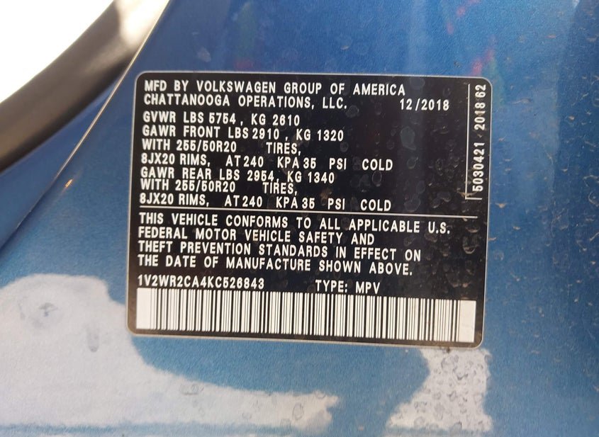 - VIN: 1V2WR2CA4KC526843