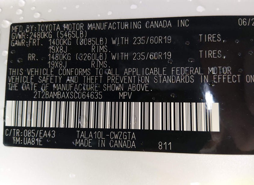- VIN: 2T2BAMBAXSC064635