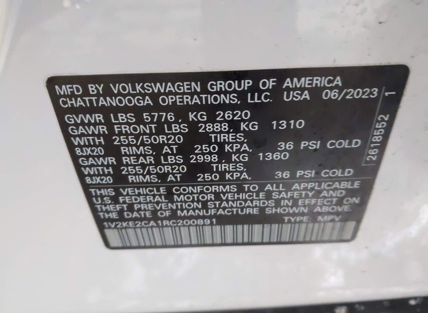 - VIN: 1V2KE2CA1RC200891