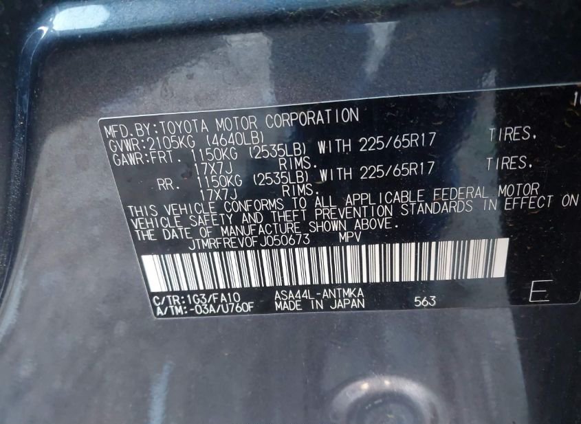 - VIN: JTMRFREV0FJ050673