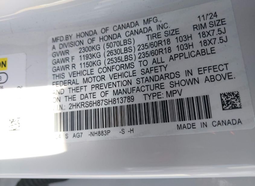 - VIN: 2HKRS6H87SH813789
