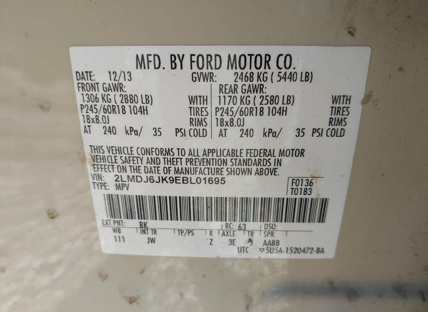 - VIN: 2LMDJ6JK9EBL01695