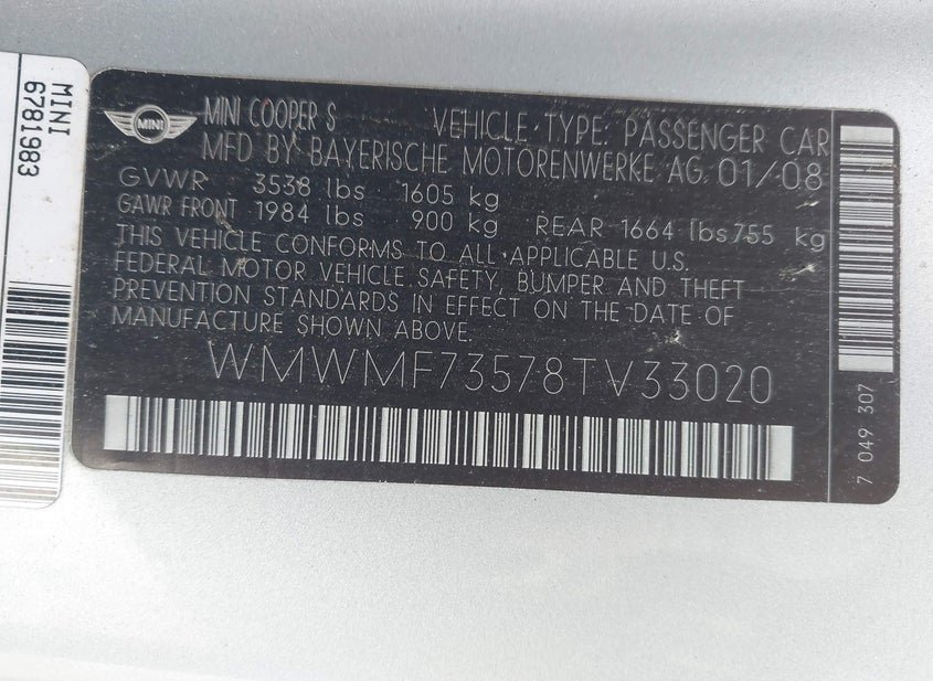 - VIN: WMWMF73578TV33020
