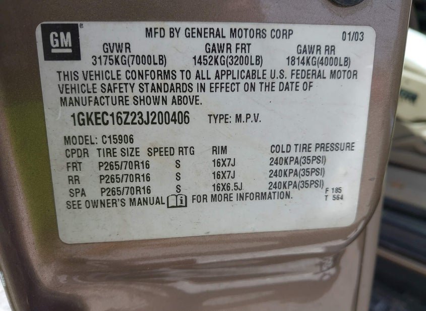 - VIN: 1GKEC16Z23J200406
