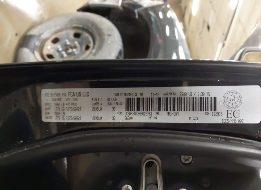 - VIN: 1C6RR7UT2HS625761