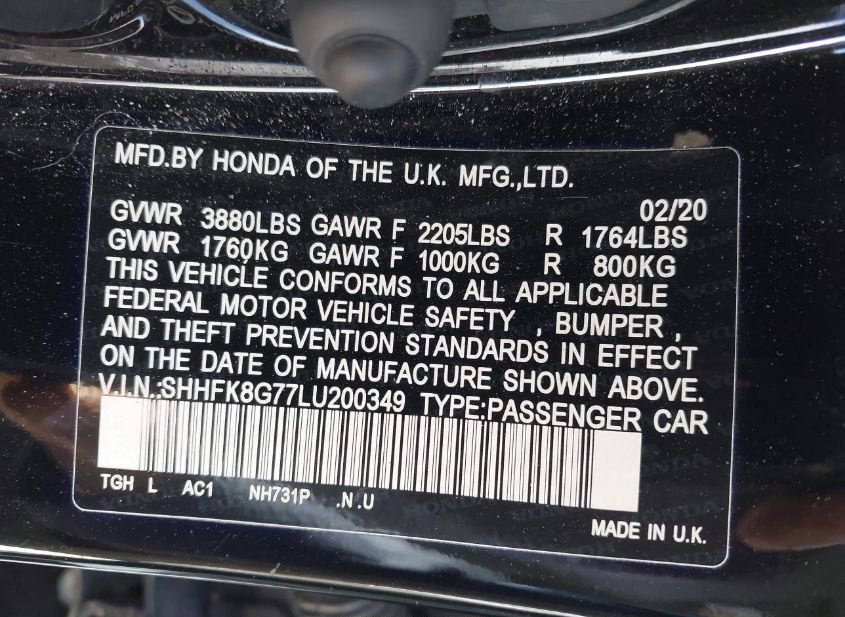 - VIN: SHHFK8G77LU200349