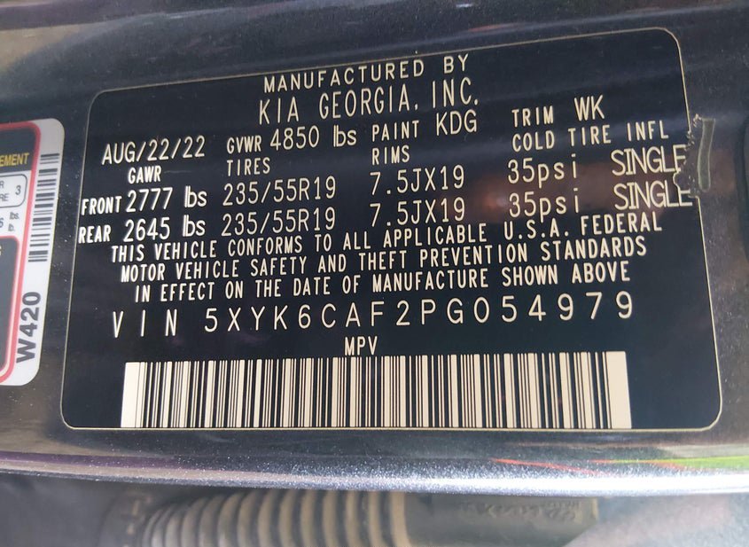 - VIN: 5XYK6CAF2PG054979