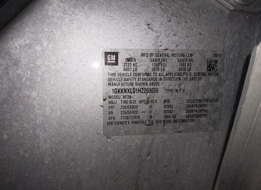 - VIN: 1GKKNXLS1HZ299039