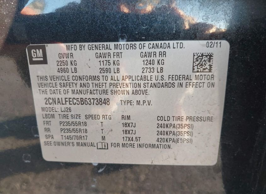- VIN: 2CNALFEC5B6373848