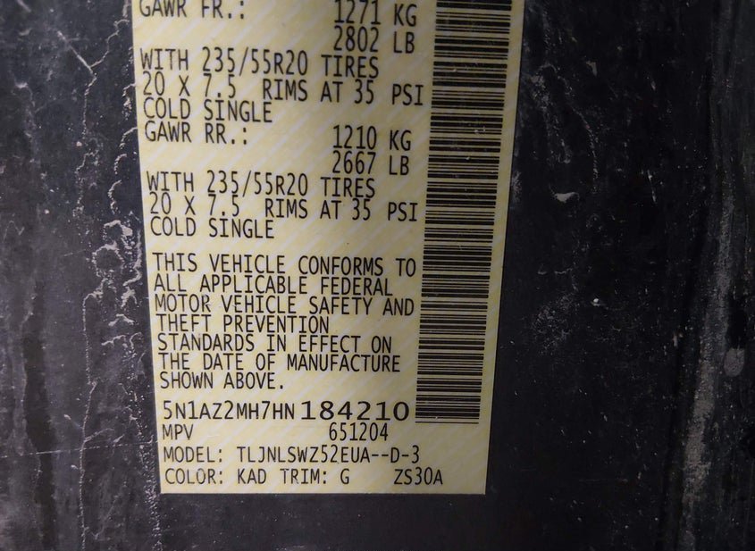 - VIN: 5N1AZ2MH7HN184210