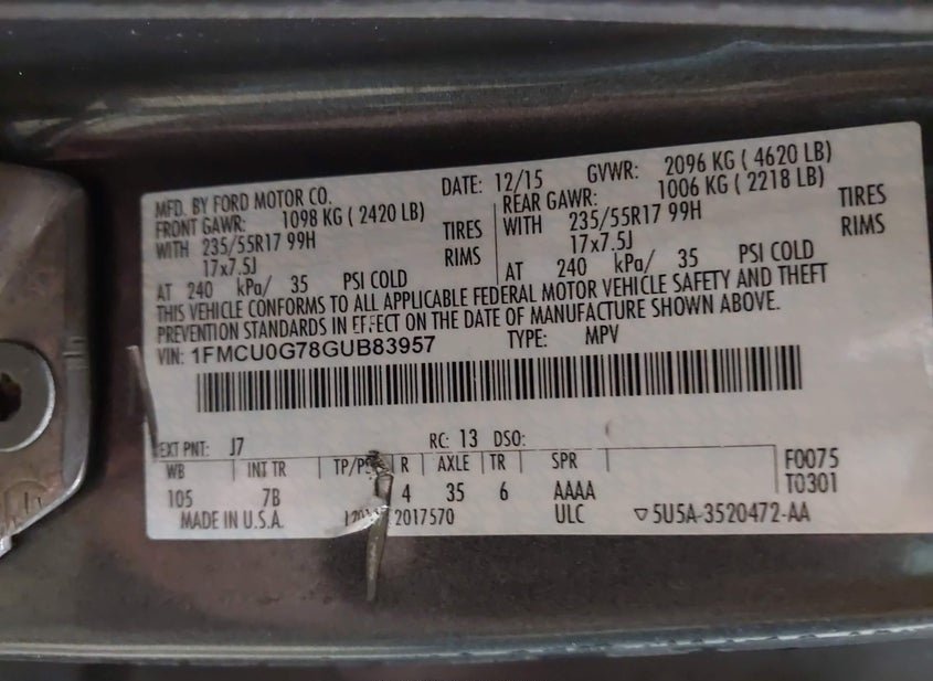 - VIN: 1FMCU0G78GUB83957