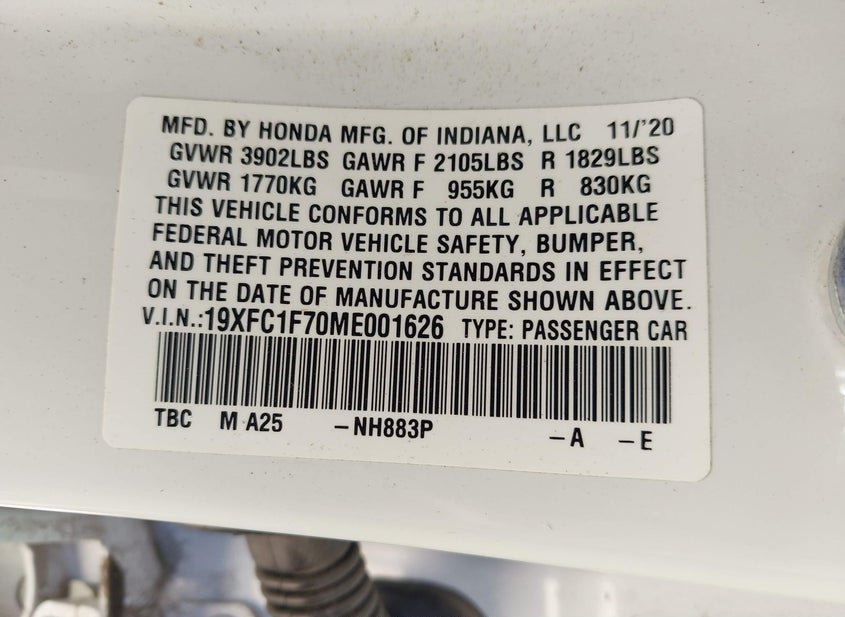 - VIN: 19XFC1F70ME001626