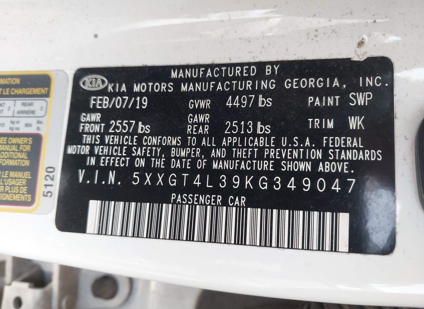 - VIN: 5XXGT4L39KG349047