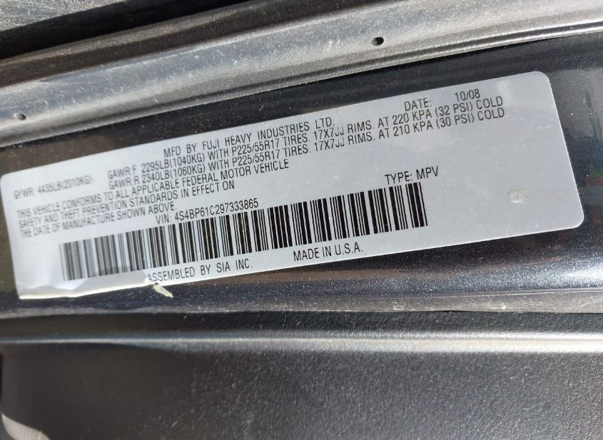 - VIN: 4S4BP61C297333865