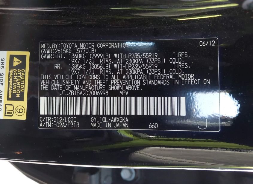 - VIN: JTJZB1BA2D2006998