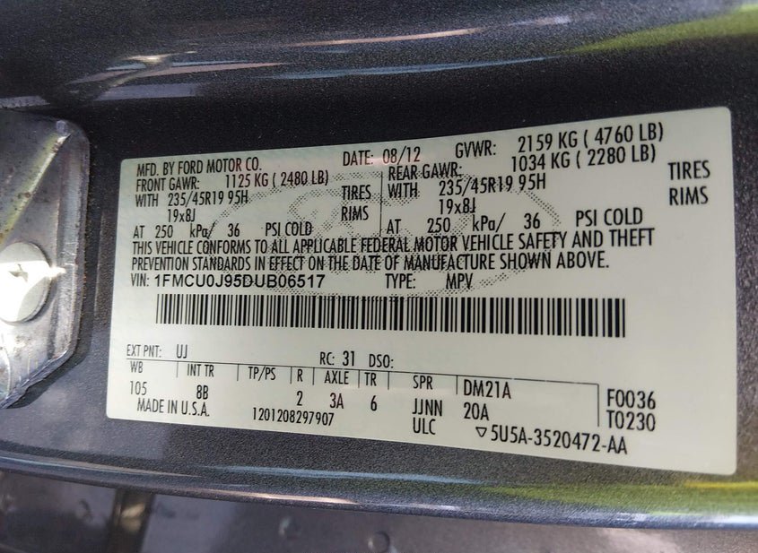 - VIN: 1FMCU0J95DUB06517