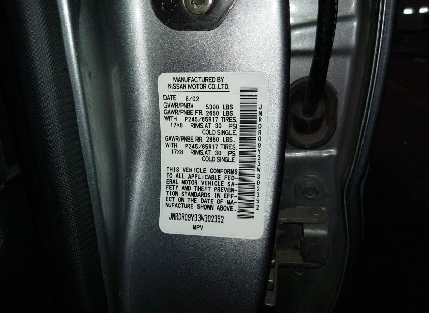 - VIN: JNRDR09Y33W302352