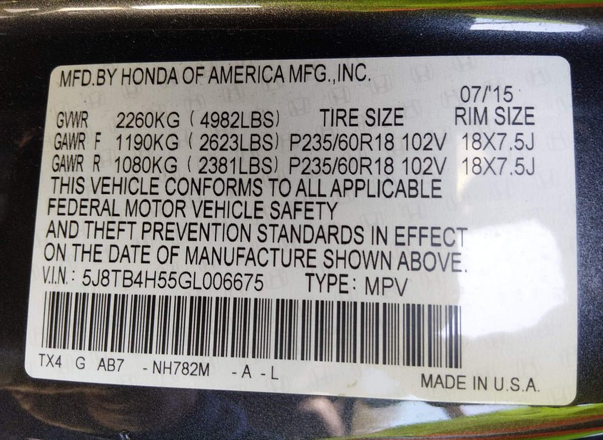 - VIN: 5J8TB4H55GL006675