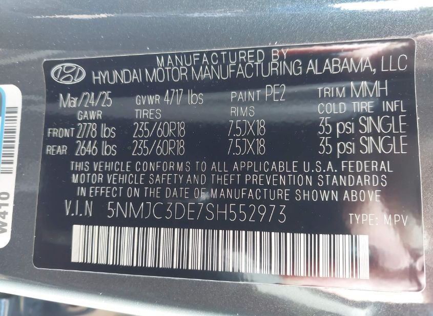 - VIN: 5NMJC3DE7SH552973