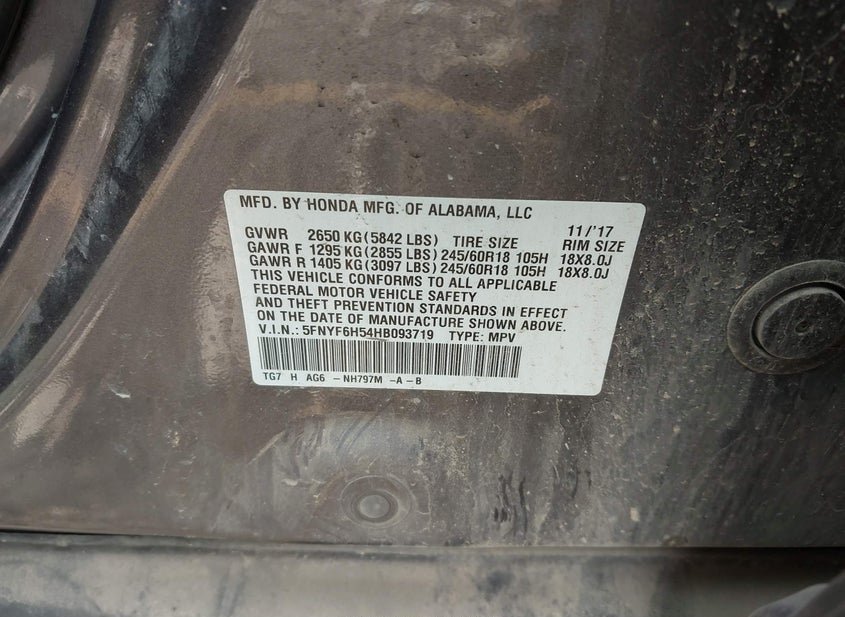 - VIN: 5FNYF6H54HB093719