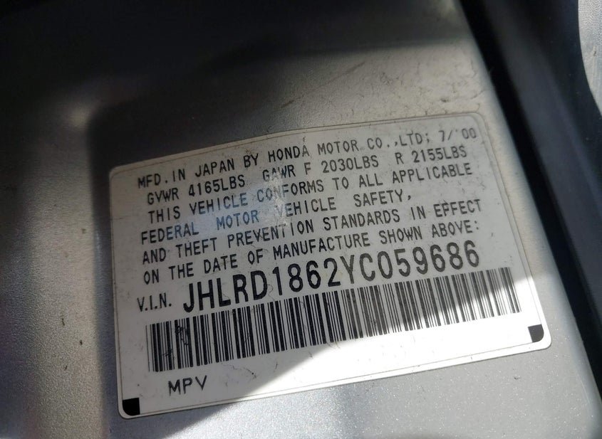 - VIN: JHLRD1862YC059686