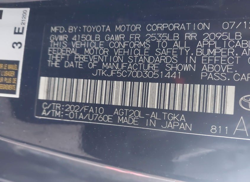 - VIN: JTKJF5C70D3051441