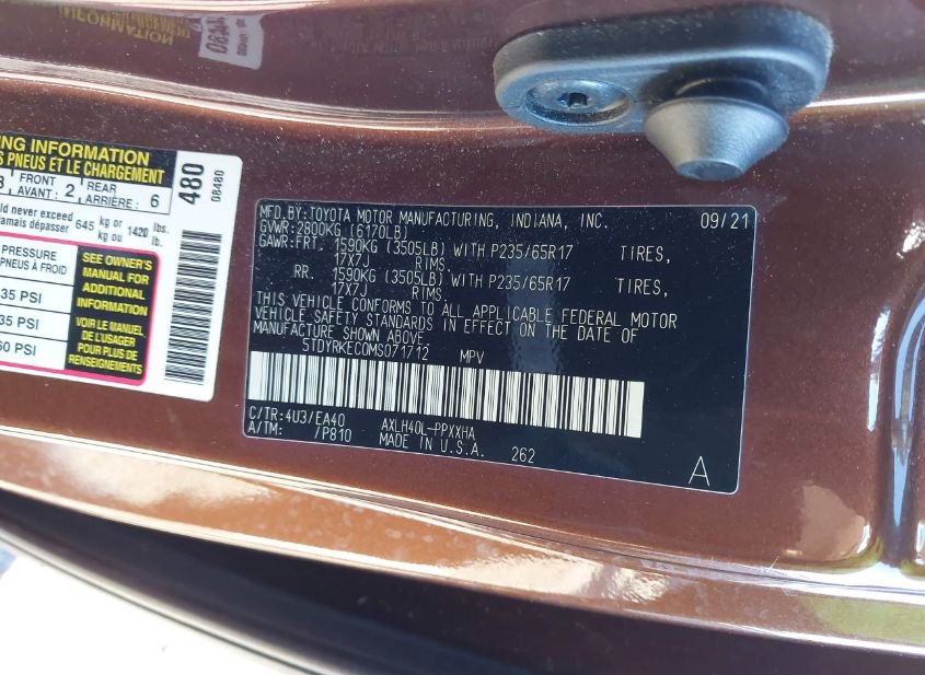 - VIN: 5TDYRKEC0MS071712
