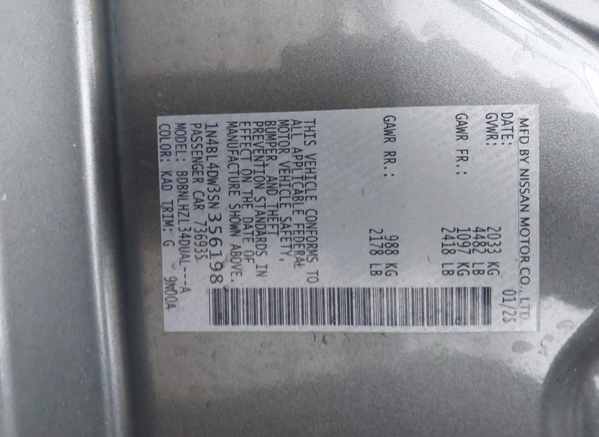 - VIN: 1N4BL4DW3SN356198
