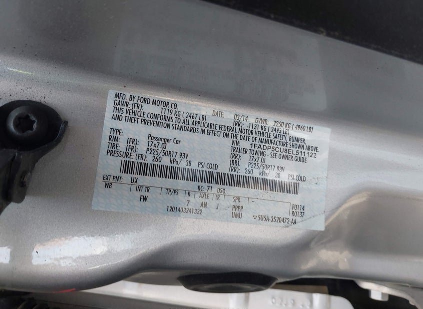 - VIN: 1FADP5CU8EL511122