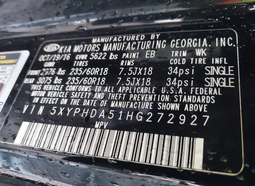 - VIN: 5XYPHDA51HG272927