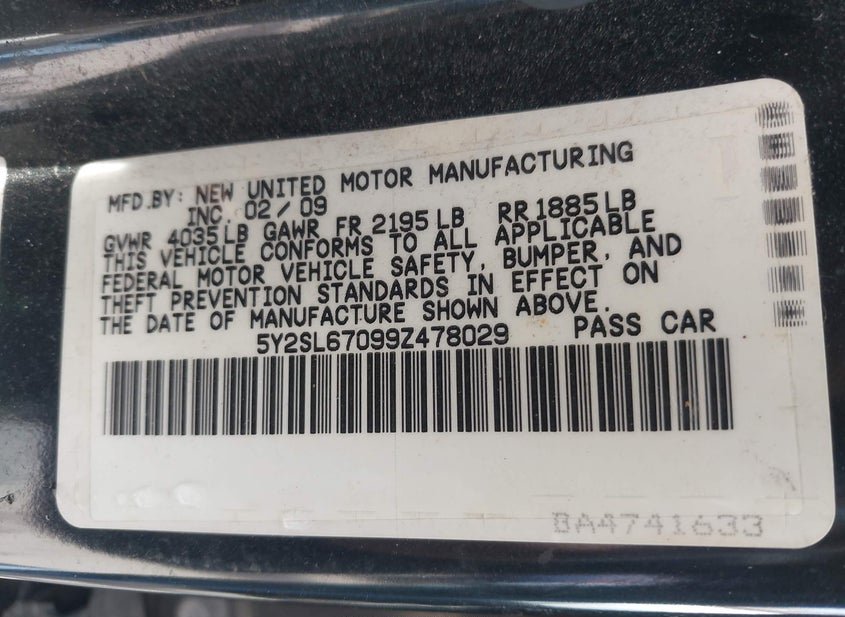 - VIN: 5Y2SL67099Z478029