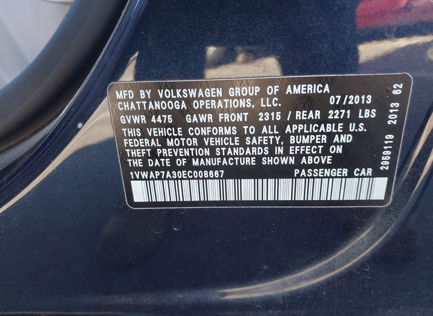 - VIN: 1VWAP7A30EC008667