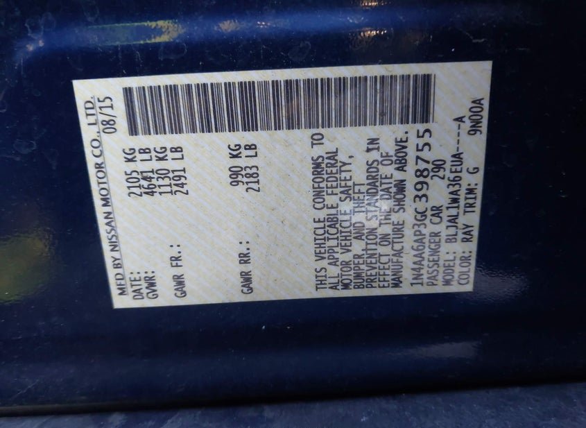 - VIN: 1N4AA6AP3GC398755