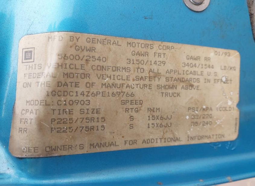 - VIN: 1GCDC14Z6PE169766