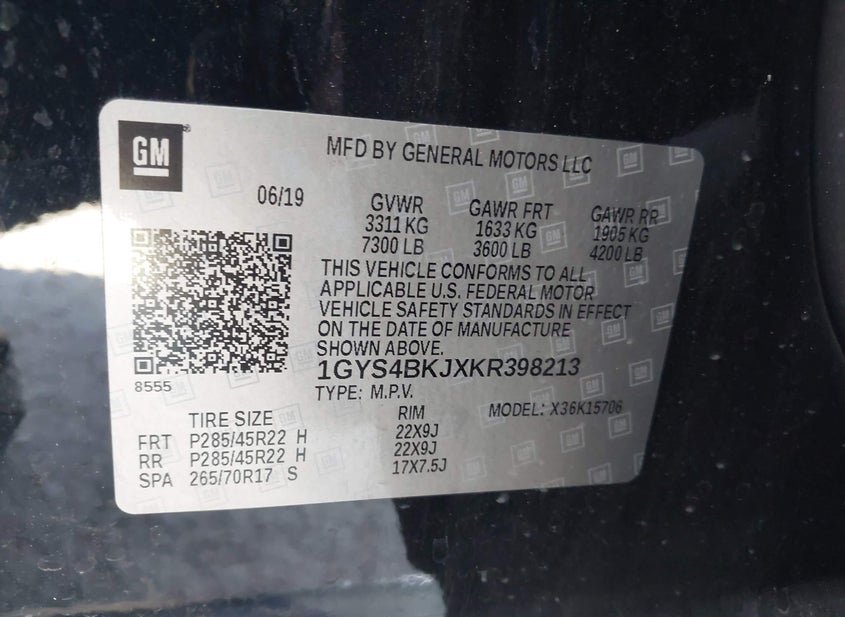 - VIN: 1GYS4BKJXKR398213