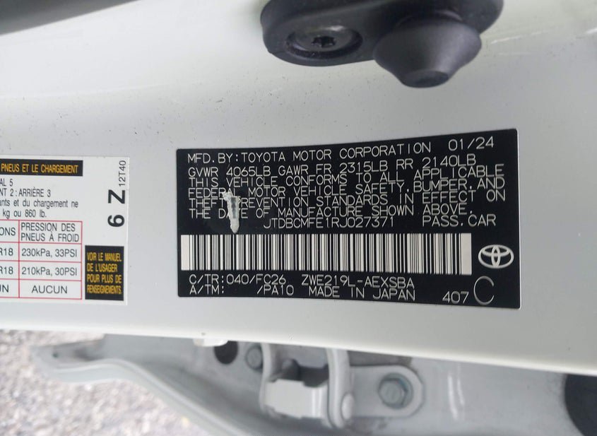 - VIN: JTDBCMFE1RJ027371