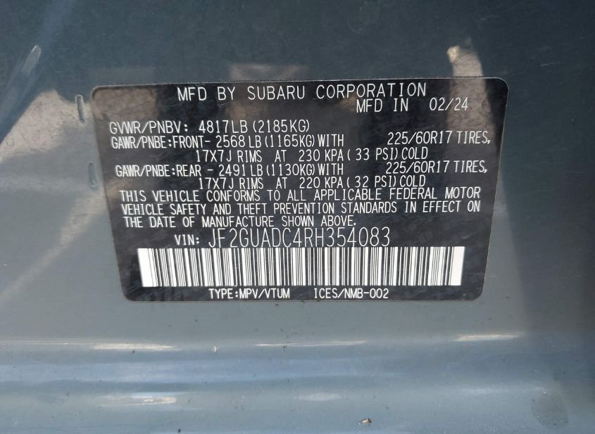 - VIN: JF2GUADC4RH354083